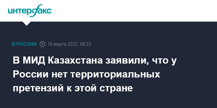 В МИД Казахстана заявили, что у России нет территориальных претензий к этой стране