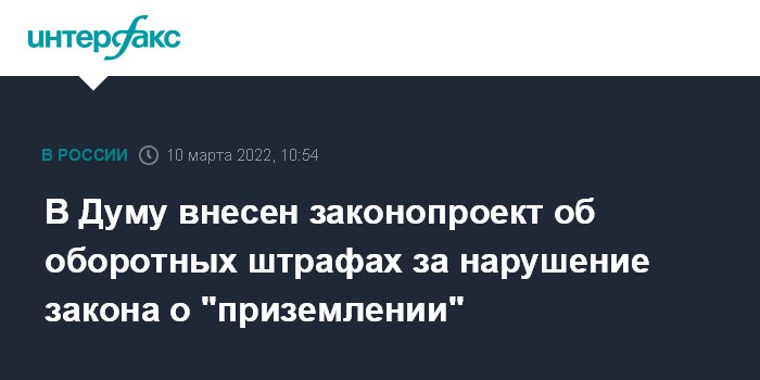 В Думу внесен законопроект об оборотных штрафах за нарушение закона о "приземлении"