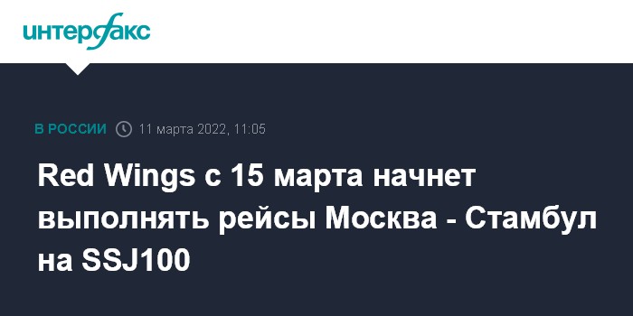 Red Wings c 15 марта начнет выполнять рейсы Москва - Стамбул на SSJ100