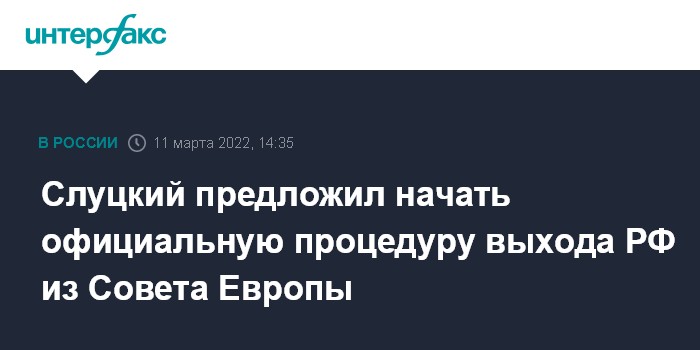 Москва. 11 марта. INTERFAX.RU - Глава комитета Госдумы по международным делам Леонид Слуцкий заявил, что России надо инициировать процедуру выхода из Совета Европы.