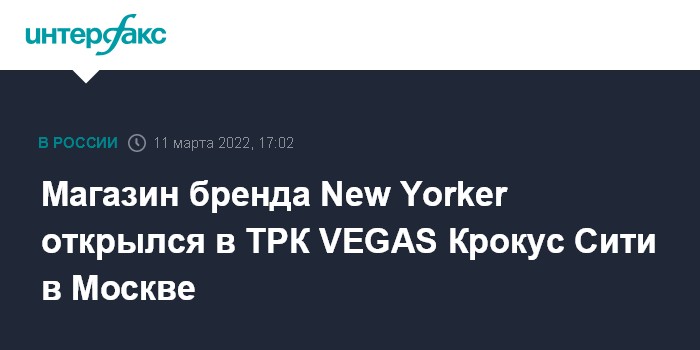 Москва. 11 марта. INTERFAX.RU - В московском торгово-развлекательном комплексе VEGAS Крокус Сити 10 марта открылся новый магазин международного германского бренда New Yorker, сообщили в пресс-службе Crocus Group.