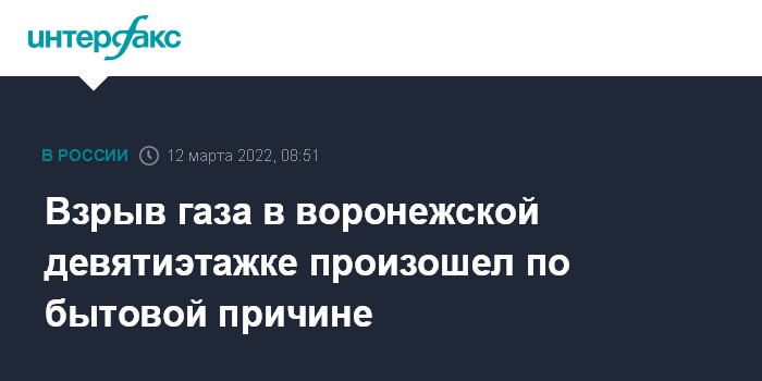 Москва. 12 марта. INTERFAX.RU - Губернатор Воронежской области Александр Гусев сообщил, что взрыв газа в многоквартирном доме в Воронеже произошел по бытовой причине.