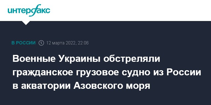 Военные Украины обстреляли гражданское грузовое судно из России в акватории Азовского моря