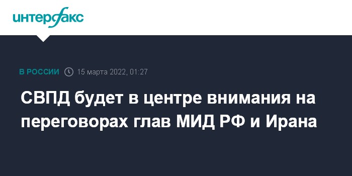 СВПД будет в центре внимания на переговорах глав МИД РФ и Ирана