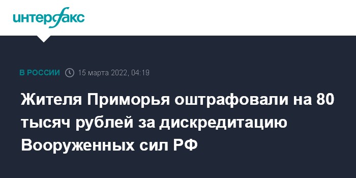Жителя Приморья оштрафовали на 80 тысяч рублей за дискредитацию Вооруженных сил РФ