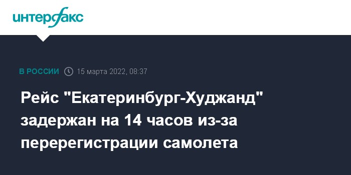 Рейс "Екатеринбург-Худжанд" задержан на 14 часов из-за перерегистрации самолета