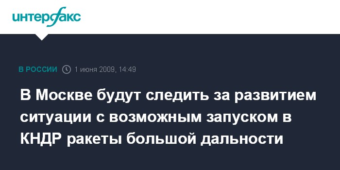 Москва. 1 июня. INTERFAX.RU - В Москве не располагают официальным подтверждением того, что КНДР намерена произвести запуск ракеты большой дальности, сообщил источник в МИД России.