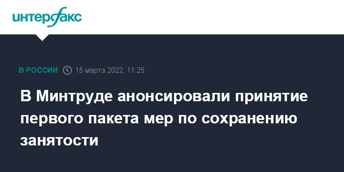 Москва. 15 марта. INTERFAX.RU - В министерстве труда и соцзащиты рассчитывают до конца текущей неделе приять первый пакет мер, направленный на поддержку занятости в РФ, сообщил глава ведомства Антон Котяков.
