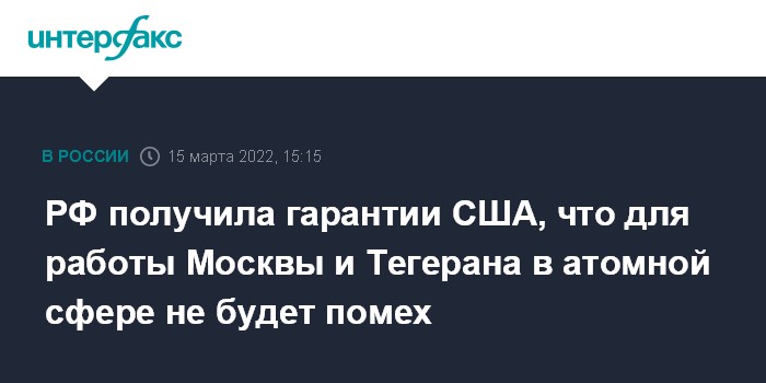 РФ получила гарантии США, что для работы Москвы и Тегерана в атомной сфере не будет помех