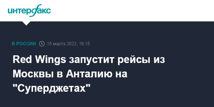 Москва. 15 марта. INTERFAX.RU - Авиакомпания Red Wings 17 марта открывает полеты из Москвы (Домодедово) в Анталию на SSJ100, сообщает пресс-служба перевозчика во вторник.