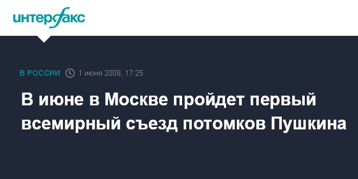 В июне в Москве пройдет первый всемирный съезд потомков Пушкина
