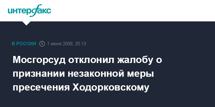 Москва. 1 июня. INTERFAX.Ru - Мосгорсуд признал законным сохранение экс-главе НК "ЮКОС" Михаилу Ходорковскому и бывшему руководителю НПО "МЕНАТЕП" Платону Лебедеву меры пресечения в виде заключения в следственном изоляторе до августа.