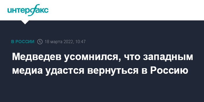 "Западные медиа своими бездарными решениями лишь существенно сократили свою аудиторию в нашей стране. И теперь чтобы вернуться, им придется на деле доказать свою независимость и доброе отношение к России и ее гражданам", - написал Медведев в своем телеграм-канале.
