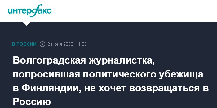 Волгоградская журналистка, попросившая политического убежища в Финляндии, не хочет возвращаться в Россию