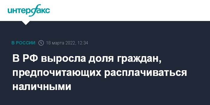Доля россиян, преимущественно расплачивающихся наличными, выросла с 25% до 30%.