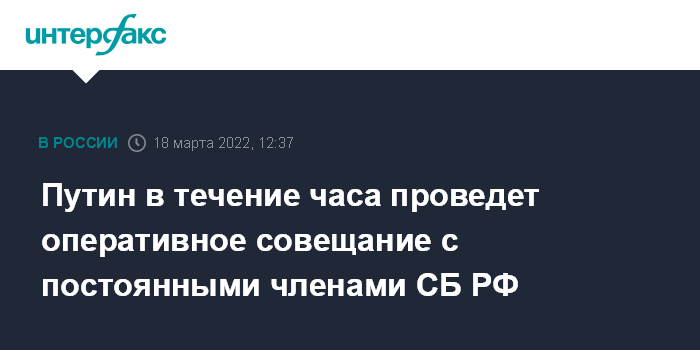 Москва. 18 марта. INTERFAX.RU - Президент РФ Владимир Путин в пятницу проведет оперативное совещание с постоянными членами Совета безопасности РФ, сообщил его пресс-секретарь Дмитрий Песков.