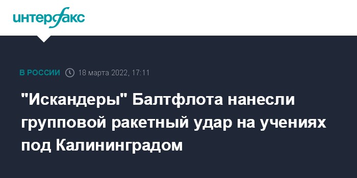 Москва. 18 марта. INTERFAX.RU - Нанесение групповых ракетных ударов по командным пунктам, аэродрому, железнодорожным узлам и другим объектам условного противника отработали расчеты оперативно-тактических комплексов (ОТРК) "Искандер-М" ракетного соединения Балтийского флота (БФ).