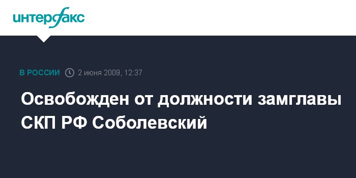 Москва. 2 июня. INTERFAX.RU – Президент России Дмитрий Медведев освободил Игоря Соболевского от должности заместителя председателя Следственного комитета при прокуратуре РФ.