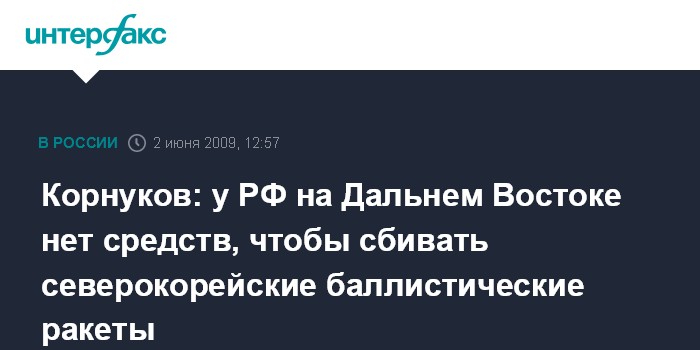 Корнуков: у РФ на Дальнем Востоке нет средств, чтобы сбивать северокорейские баллистические ракеты