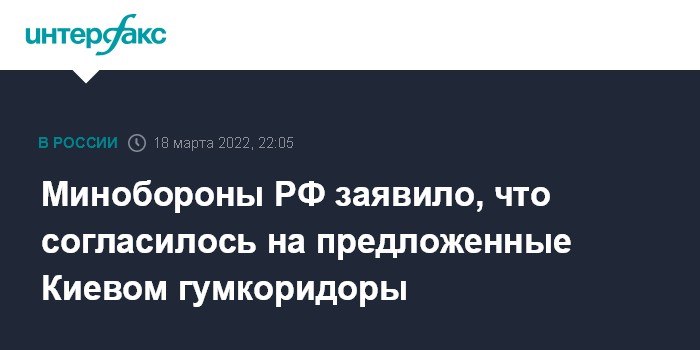 Минобороны РФ заявило, что согласилось на предложенные Киевом гумкоридоры