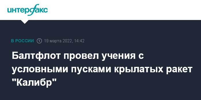 Москва. 19 марта. INTERFAX.RU - Балтийский флот России сообщил об учениях кораблей с условными (электронными) пусками крылатых ракет "Калибр".