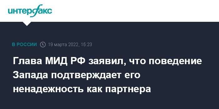 Глава МИД РФ заявил, что поведение Запада подтверждает его ненадежность как партнера