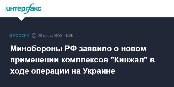 Минобороны РФ заявило о новом применении комплексов "Кинжал" в ходе операции на Украине
