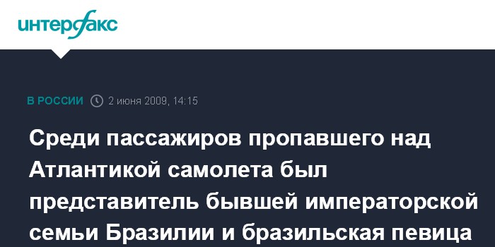 Среди пассажиров пропавшего над Атлантикой самолета был представитель бывшей императорской семьи Бразилии и бразильская певица