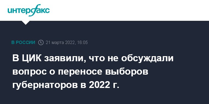 В ЦИК заявили, что не обсуждали вопрос о переносе выборов губернаторов в 2022 г.
