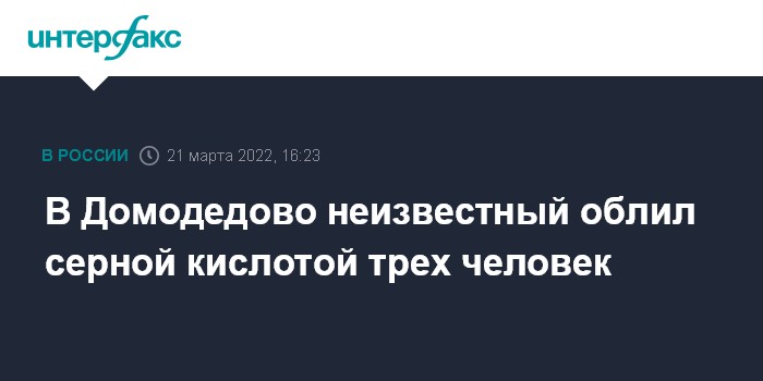 Москва. 21 марта. INTERFAX.RU - Неизвестный облил кислотой женщину и мужчину в Домодедово, а также попал в мимо проходящего школьника, по данному факту проводится проверка, сообщает сайт главного следственного управления СКР по Московской области.