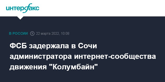 ФСБ задержала в Сочи администратора интернет-сообщества движения "Колумбайн"