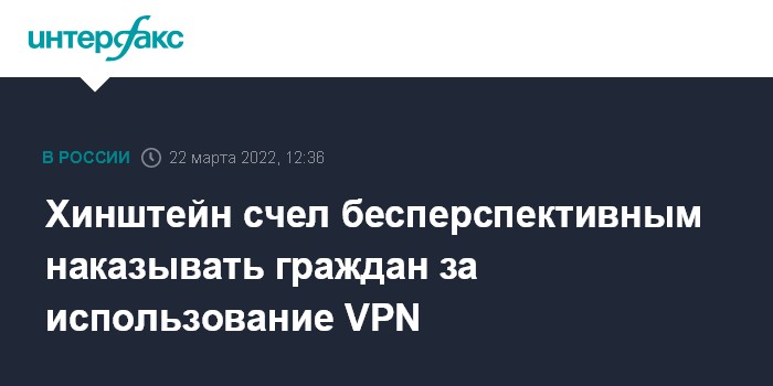"Если хотите мое частное мнение, я считаю, что введение ответственности для пользователей за использование VPN неперспективно и с точки зрения результативности не даст никакого эффекта, кроме обратного", - сказал Хинштейн журналистам во вторник.