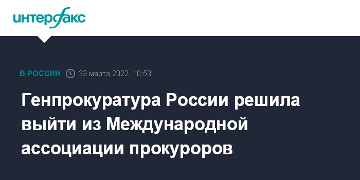 "С глубоким разочарованием в соответствии со статьей 6.1 Устава МАП уведомляю о выходе Генеральной прокуратуры Российской Федерации из Ассоциации и невозможности дальнейшего взаимодействия, а также о расторжении заключенного 20 октября 2021 г. Соглашения о сотрудничестве по обеспечению деятельности регионального представительства МАП в Санкт-Петербурге на основании его статьи 11(3)", - говорится в письме генпрокурора РФ.