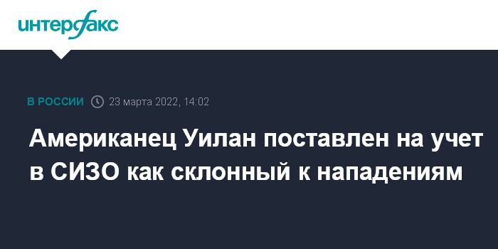 Американец Уилан поставлен на учет в СИЗО как склонный к нападениям
