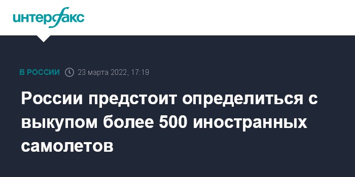 "Уже запросы поступили на (возврат - ИФ) более чем 500 самолетов иностранного производства (...) Мы сейчас определяемся с правительством, я вам просто скажу объем выкупа - это $20 млрд по остаточной стоимости, если выкупать то, что мы недоплатили. Это очень большая сумма", - добавил Савельев.