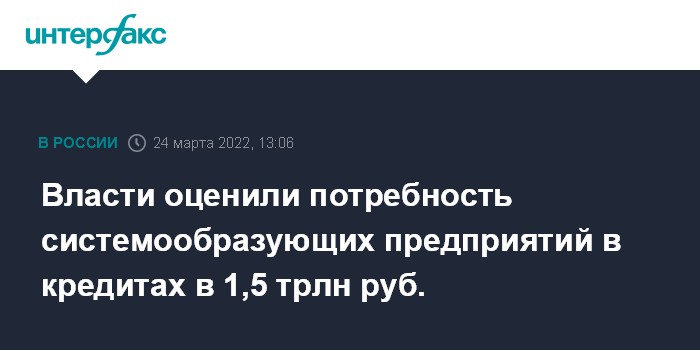 Власти оценили потребность системообразующих предприятий в кредитах в 1,5 трлн руб.