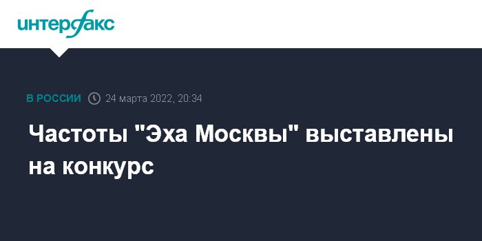 Москва. 24 марта. INTERFAX.RU - После закрытия радиостанции "Эхо Москвы" и отключения ее от радиоэфира, 25 мая пройдет конкурс на ее радиочастоты, сообщил Роскомнадзор.