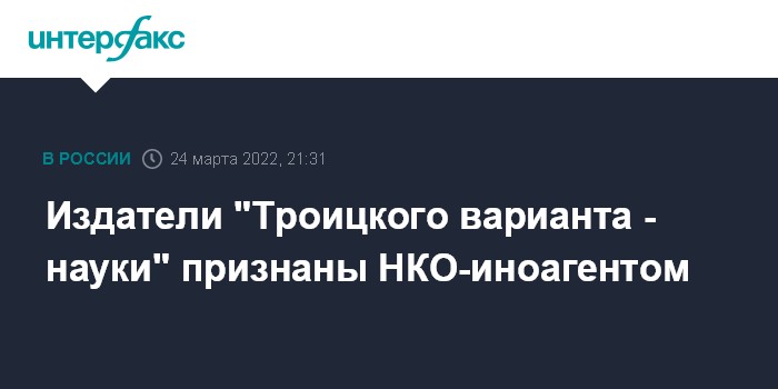 Издатели "Троицкого варианта - науки" признаны НКО-иноагентом