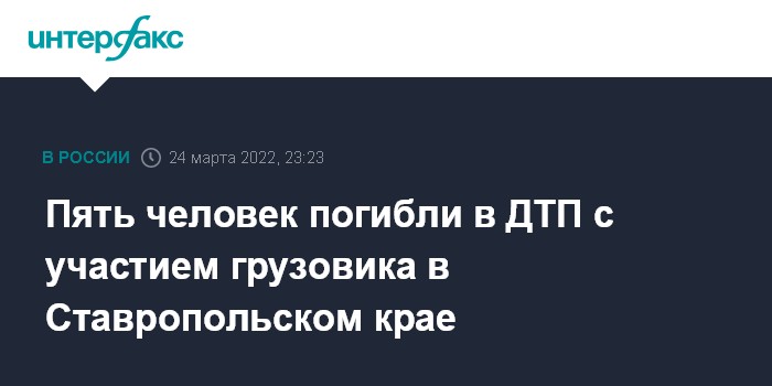 Москва. 24 марта. INTERFAX.RU - Пять человек погибли в результате столкновения иномарки с грузовиком в Ставропольском крае, сообщает краевое управление ГИБДД.