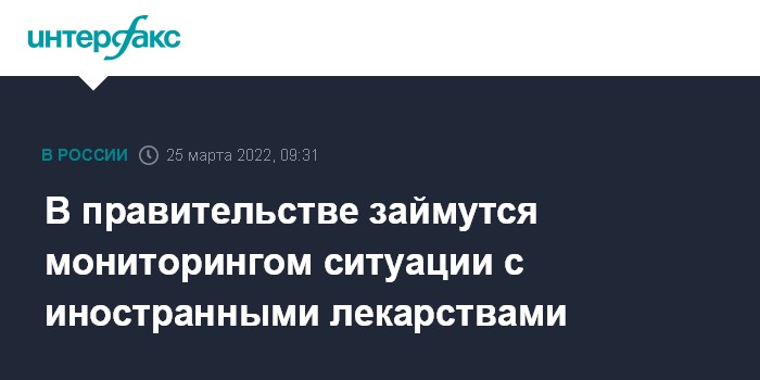 Москва. 25 марта. INTERFAX.RU - Оперативная рабочая группа правительства, созданная в период пандемии, подключилась к контролю за ситуацией с иностранными лекарствами из перечня жизненно необходимых и важнейших препаратов (ЖНВЛП), сообщила пресс-служба правительства.