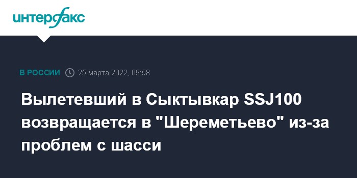 Вылетевший в Сыктывкар SSJ100 возвращается в "Шереметьево" из-за проблем с шасси