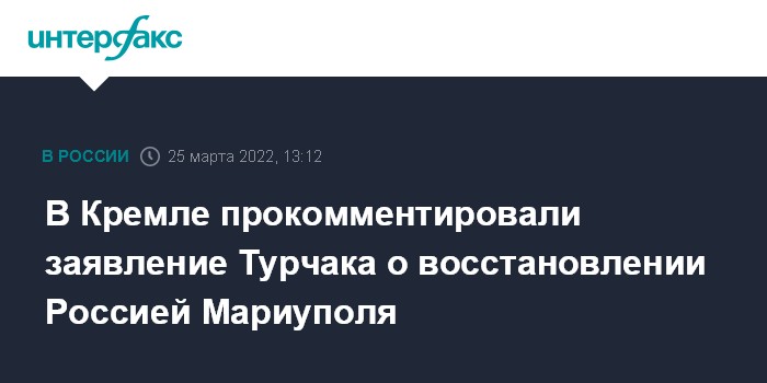 Москва. 25 марта. INTERFAX.RU - Пресс-секретарь президента РФ Дмитрий Песков прокомментировал заявление секретаря Генсовета партии "Единая Россия" Андрея Турчака о восстановлении после специальной военной операции украинского города Мариуполя и о том, что "Россия здесь навсегда".