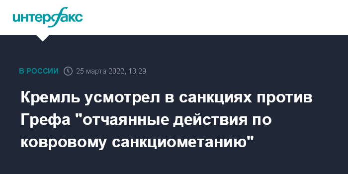 Кремль усмотрел в санкциях против Грефа "отчаянные действия по ковровому санкциометанию"