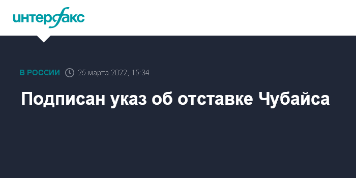 Пресс-секретарь президента РФ Дмитрий Песков в тот же день подтвердил эту информацию. "Да. Чубайс уволился по собственному желанию. А уехал - не уехал - это его личное дело", - сказал Песков "Интерфаксу", отвечая на вопрос, ушел ли Чубайс с поста по собственному желанию и покинул ли он Россию.