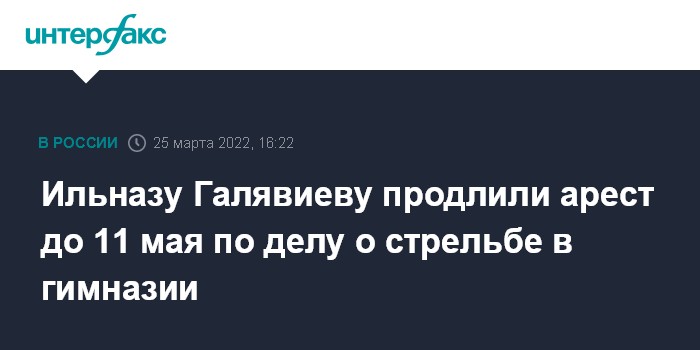 Москва. 25 марта. INTERFAX.RU - Приволжский суд Казани продлил до 11 мая арест Ильназу Галявиеву, арестованному по делу о стрельбе в гимназии №175 Казани, сообщили"Интерфаксу" в суде.