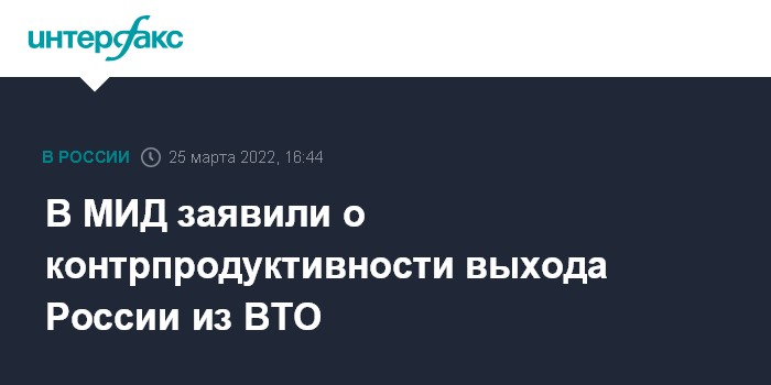 Москва. 25 марта. INTERFAX.RU - Выход России из Всемирной торговой организации (ВТО) будет контрпродуктивен, заявил директор департамента экономического сотрудничества МИД РФ Дмитрий Биричевский.