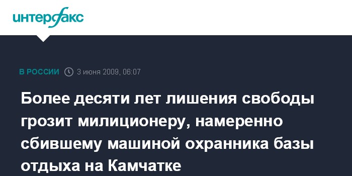 Более десяти лет лишения свободы грозит милиционеру, намеренно сбившему машиной охранника базы отдыха на Камчатке
