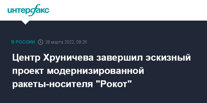 Москва. 26 марта. INTERFAX.RU - Центр им. Хруничева завершил разработку эскизного проекта модернизированной легкой ракеты "Рокот", создаваемой на основе межконтинентальной баллистической ракеты "РС-18", сообщил гендиректор центра Алексей Варочко.