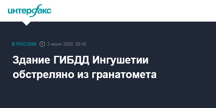 Москва. 3 июня. INTERFAX.RU - Здание ГИБДД МВД Ингушетии в Назрани в среду утром было обстреляно из гранатомета, сообщили агентству "Интерфакс-Юг" в МВД республики.