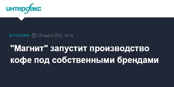 Москва. 28 марта. INTERFAX.RU - Ритейлер "Магнит" осенью 2022 года на базе своего предприятия в Твери планирует организовать обжарку и фасовку кофе, обеспечив 22% потребности компании в этом продукте во всех 67 регионах присутствия.